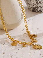 Éléments : Pendentifs en forme de cœur solaire, soleils, scarabée, perles blanches – jeu de symboles mystiques et joyeux